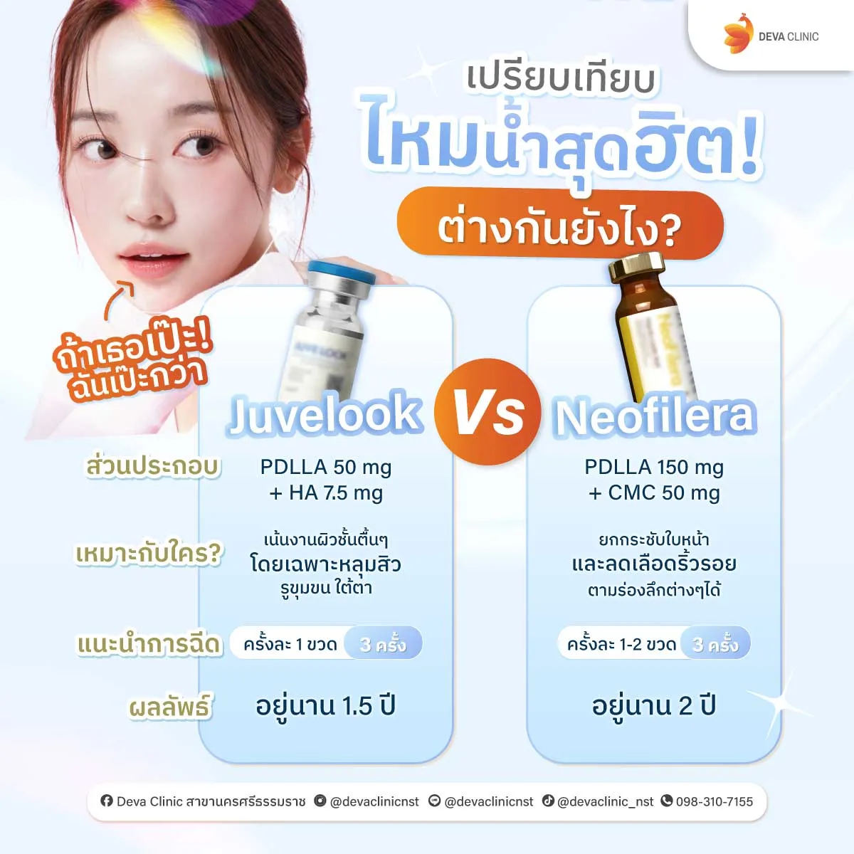 ที่ Deva Clinic เราใช้เทคนิคการฉีดที่ถูกต้องและยาที่ได้มาตรฐาน โอกาสเกิดก้อนจึงน้อยมาก