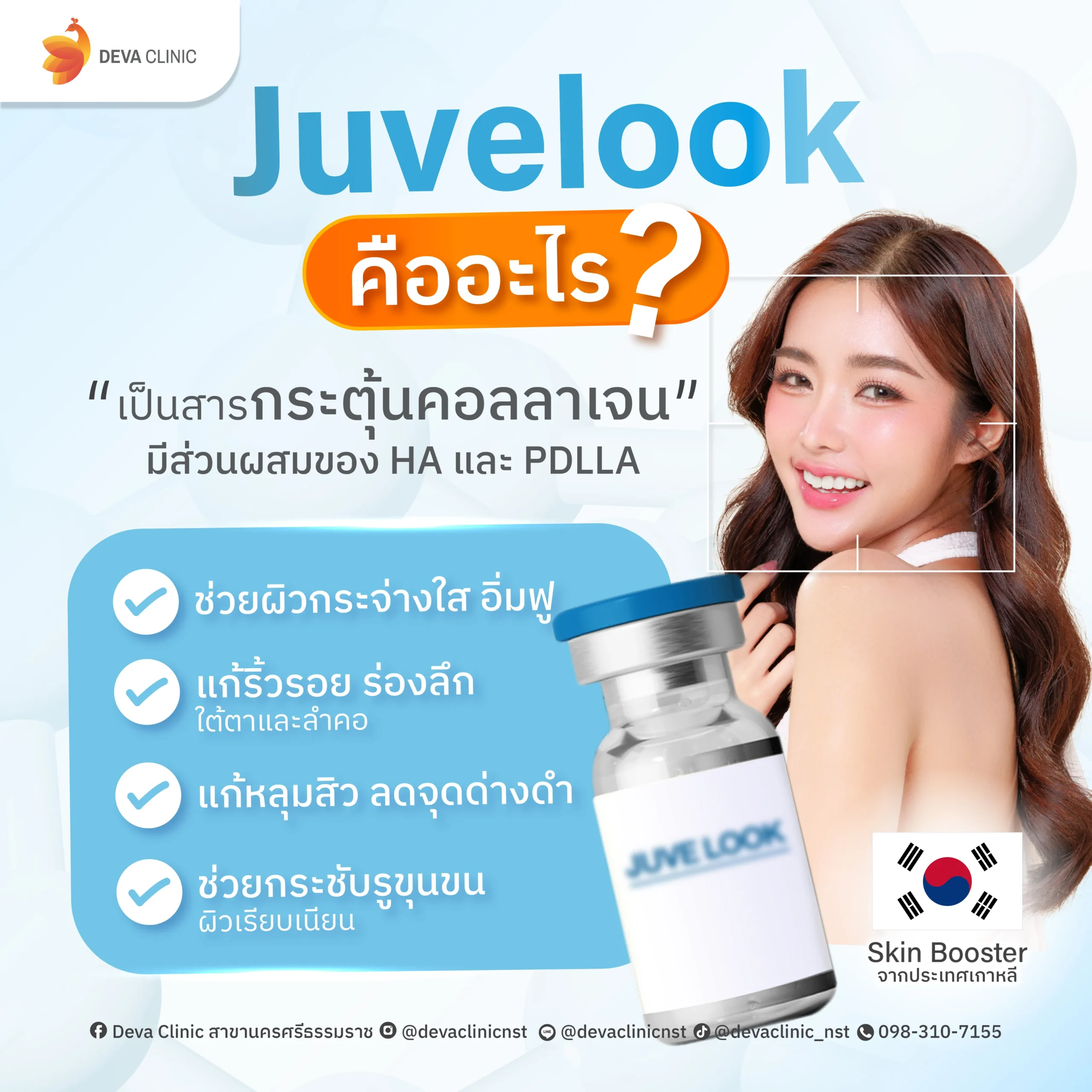 Juvelook คือสารกระตุ้นคอลลาเจนแบบไฮบริด (Hybrid Biostimulator) ที่ผสมผสานระหว่าง PDLLA และ Hyaluronic Acid (HA) เข้าด้วยกันอย่างลงตัว
